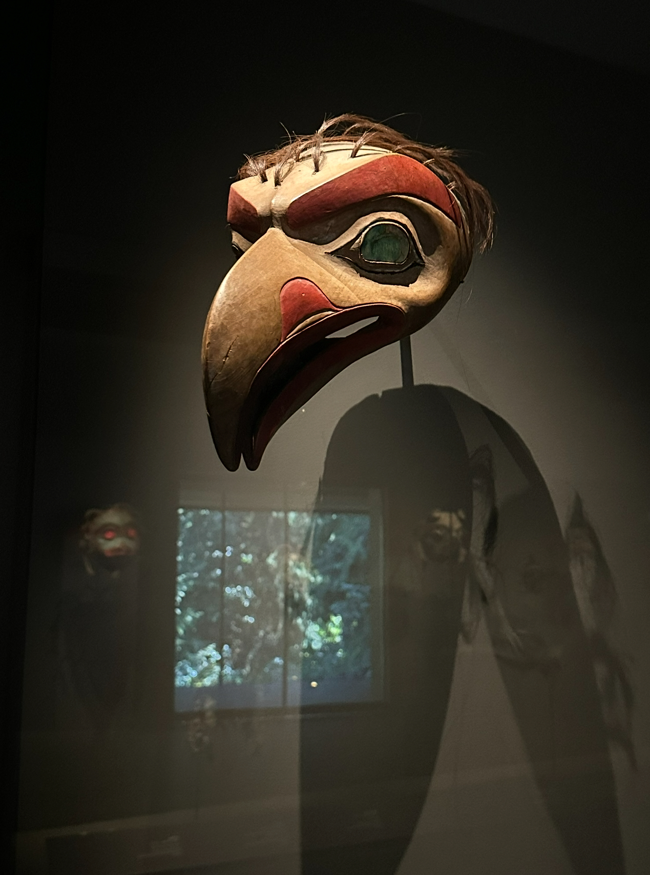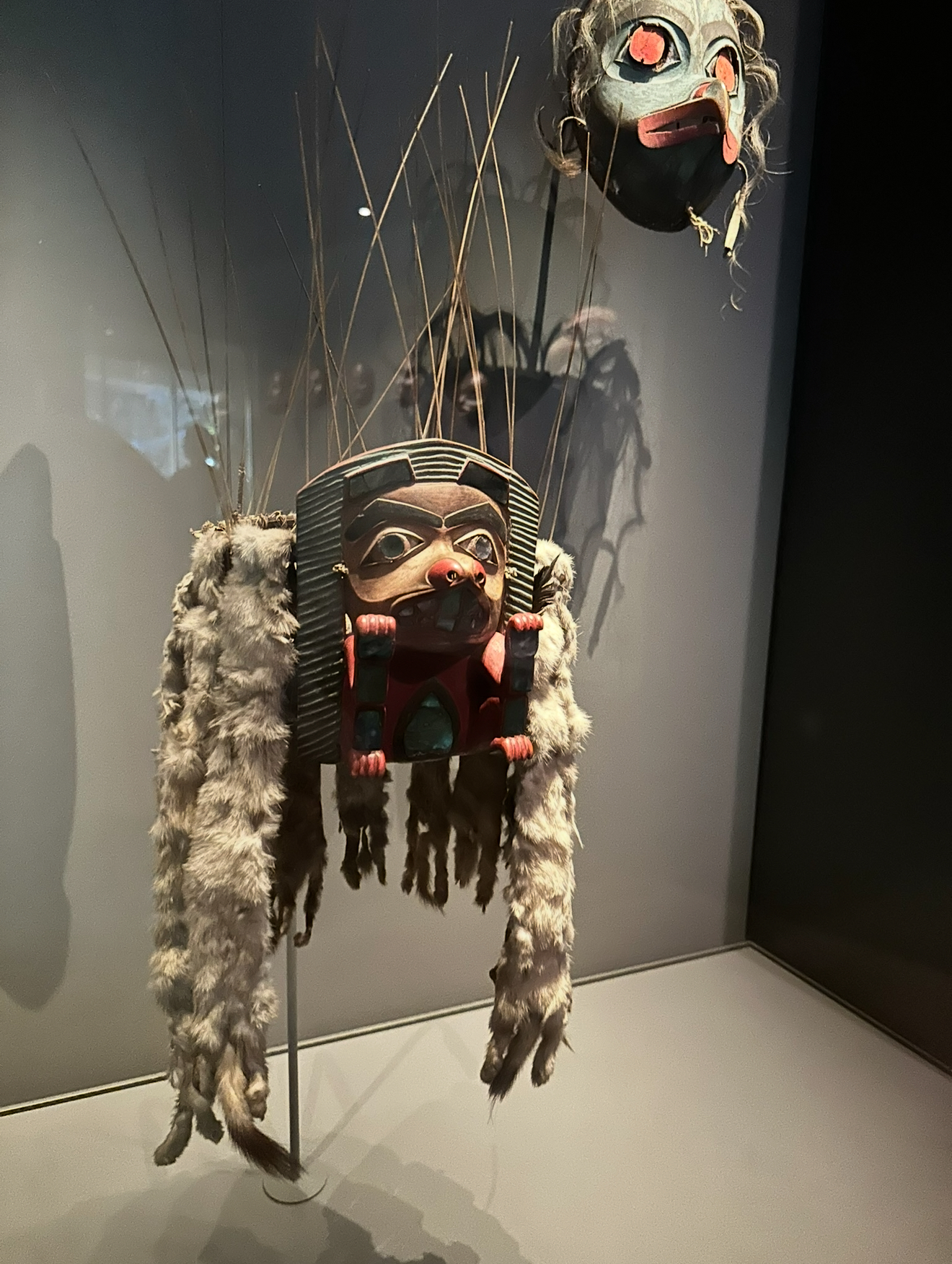 The masks were not only ritual objects but also works of art. They depicted animals (such as the raven, bear, eagle, and wolf), spirits, humans, and supernatural beings. They were made of wood (usually cedar), painted in bright colours, and decorated with feathers, fur, and shells.